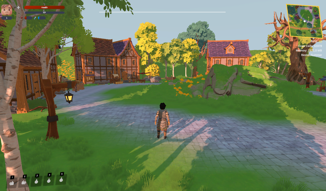 Early playtests revealed significant FPS drops in the Summer biome due to dense vegetation. Rather than compromise the visual design, I implemented GPU instancing for all foliage, developed a 3-tier LOD system, and optimized draw calls through aggressive batching.