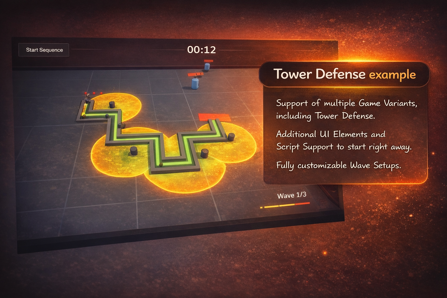 SWS (Spawn & Wave System) is a complete spawning and wave management system for Game Creator 2. Create Tower Defense games, Roguelike survival arenas, resource gathering systems, and more — all through Visual Scripting with no coding required.